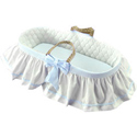 The ideal thing in which to place your precious baby at any time. This lovely moses basket comes complete with a gingham trimmed bumpers and elegant bows. Convenient handles allow for easy mobility around the house and just about wherever you wish.